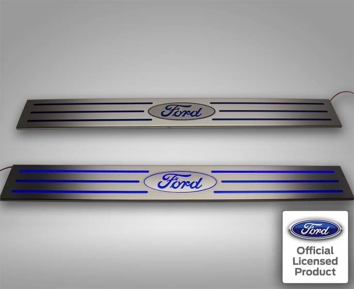 Show your Ford allegiance with our stainless steel Illuminated Ford Logo Door Sills. You'll appreciate them in both day and night. Durable stainless holds up to the rigors of your pickup truck while adding a custom style to your interior. At night they serve as a useful visual aid with mega illuminated style. Choose your color option above.