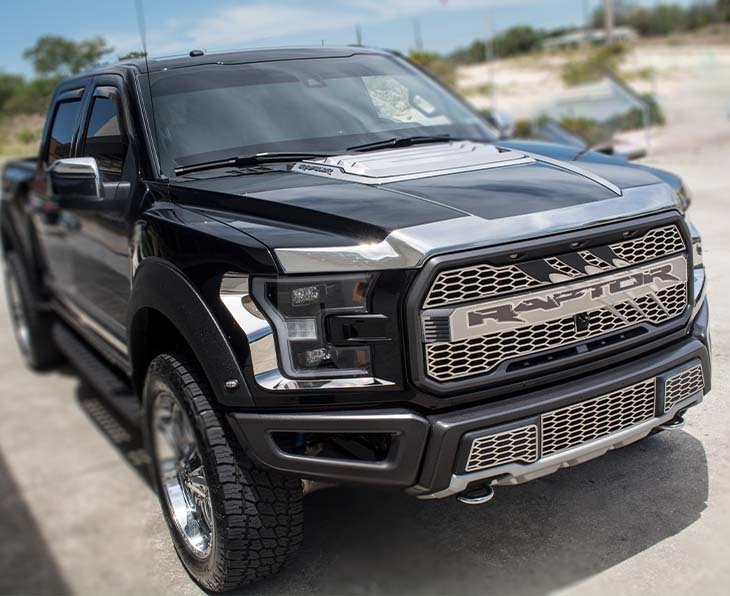 Customize your Raptor with our polished stainless steel Hood Accents. These trim pieces are designed to fit directly onto the hood of your Raptor, taking a bland stock hood and turning into something that shines in the sunlight. Each piece installs easily with an easy peel and stick-on application.