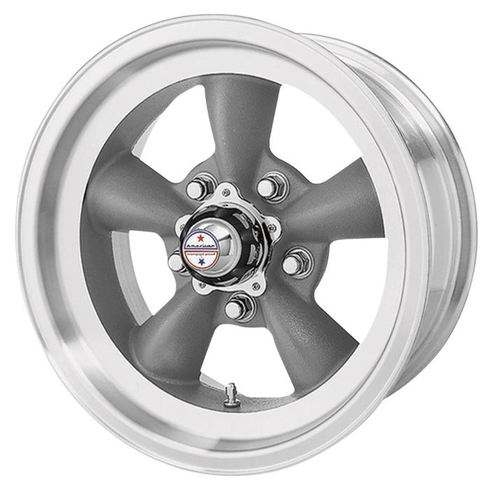 This 14x6 American Racing Torq-Thrust D wheel features a 5 on 4 and 3/4 bolt pattern for direct fitment on General Motors muscle car applications. This VN105 Torq-Thrust D wheel features a machined outer lip and textured gray spokes for an old school look. It features 3.42 inches of backspacing, which translates to a -2 offset. This offset allows fitment on many classic muscle car applications with drum brakes or disc brakes, and is intended for use on the front or rear of the vehicle. Torq-Thrust wheels feature a one-piece cast aluminum construction, and features a conical lug nut seat, meaning you can use common acorn style lug nuts.