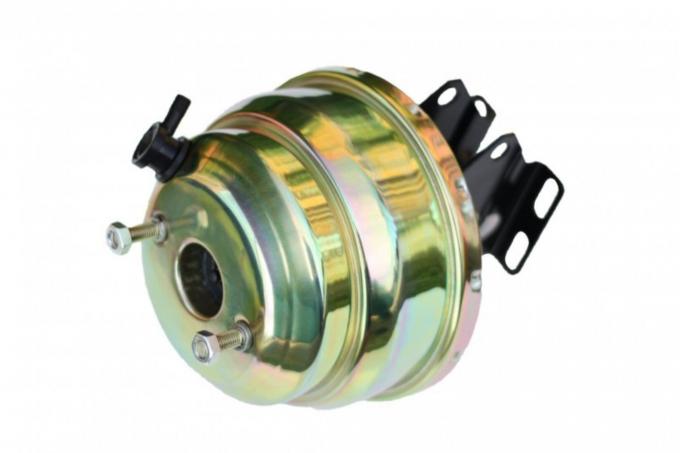 New 8" Dual Diaphragm zinc plated power brake booster kit. This 8" power booster is hand polished before a yellow zinc finish is applied for a top quality finish. The booster mounting brackets are a direct fit to your factory firewall. Designed to work with most aftermarket master cylinders & some factory master cylinders.*Note - Will not fit 1969-72 Factory Power Brake Cars.