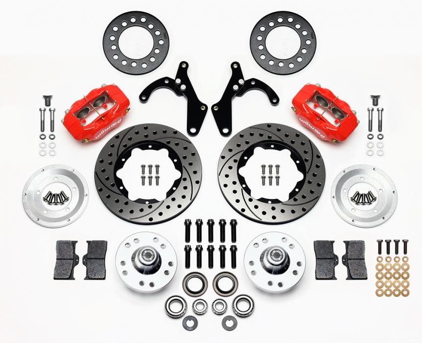 FDL Pro-Series Front Hub Kits offer complete disc brake upgrade solutions for OEM drum brake spindle applications for the popular 55-57 Chevrolet 210 / 150 /Bel Air Passenger cars. Based on the venerable forged billet Dynalite caliper and 11.00” x .81 rotors, these versatile kits are easily optioned to suit the braking requirements and style preferences for a daily driver, serious competition, or the most discriminating show enthusiast. This kit requires no modifications for installation, and provides plenty of clearance inside most popular 15” wheels. This kit will also work with aftermarket 14” disc brake steel wheels available from other vendors. FDL Pro-Series kits can be used with either manual or power boost master cylinders.
