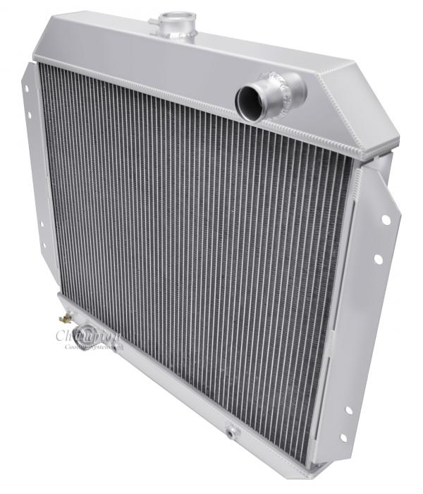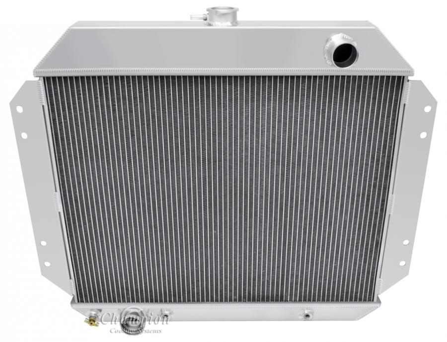 Our Champion Pro series radiators are designed to cool your high performance engine and to keep you and your car on the road. The Champion Pro series is designed using 11/16” tubes. These radiators are built with three rows of tubes, brazed aluminum cores which are tig-welded to aluminum tanks. All have approximately 14-16 louvered fins per inch, a brass petcock, and all are designed with aircraft grade aluminum. The strength of the aluminum allows for the improved design of larger tubes which allows a lightweight more affordable aluminum radiator to outperform a copper-brass radiator of similar dimensions. These radiators are typically 30-40% more efficient than their copper-brass equivalent. We would recommend one of these radiators for vehicles applications with 800 horsepower or less.