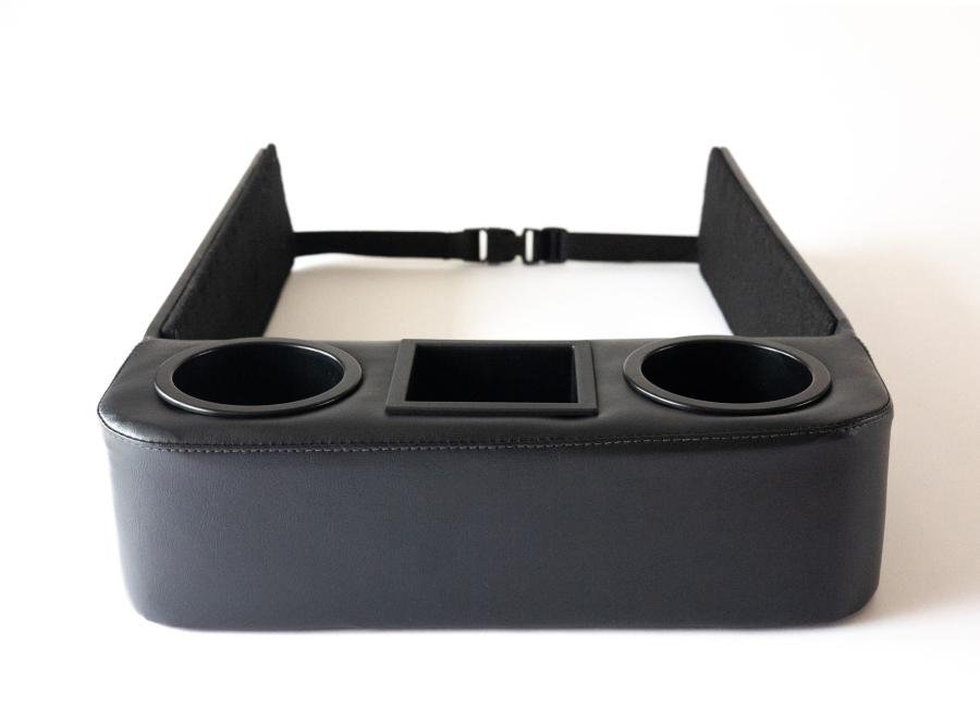Besides having two drink holders there is a tray nested between the drink holders that is used to hold items such as cell phones, sunglasses and maps.