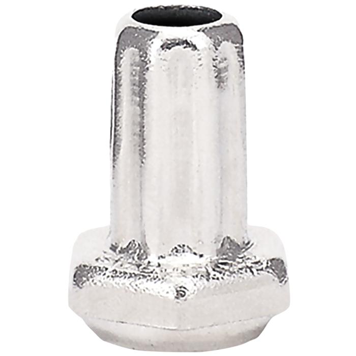 This nickel nut is 1 1/8 Inch tall. This valve stem nut threads on wider portion of nickel stems. It holds stem in place to eliminate slippage of tube. The bright nickel finish resists corrosion. Coker Tire also offers a selection of tire valve caps for valve stems.