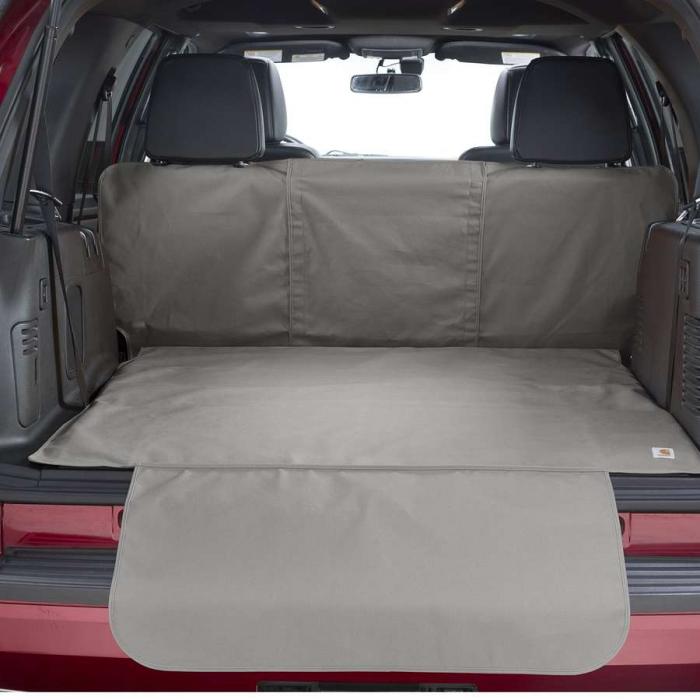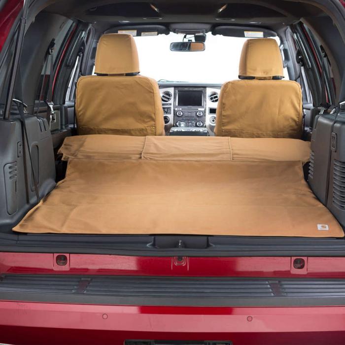 Custom Cargo Area Liners protect the entire floor area and seat back. Hook & loop strip allows split seats to operate. Made with tough, waterproof, urethane-coated polyester fabric. A fold-out bumper flap is included for additional protection of the bumper area. Custom Cargo Area Liners are perfect for hauling plants, groceries, sports equipment or anything else that you need to protect the cargo are from.