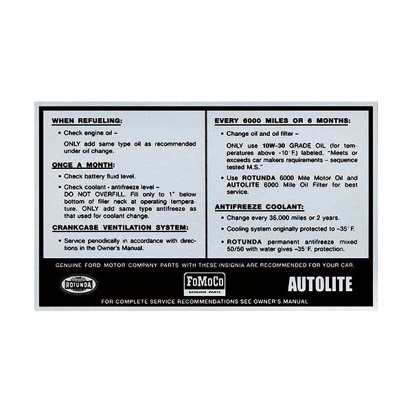 Choose from our complete selection of original engine, trunk, and interior detailing decals. All of our decals were reproduced from original Ford decals in intricate detail and feature correct shape, design, and coloring for the concours restoration. For decals not listed, please contact our sales department.