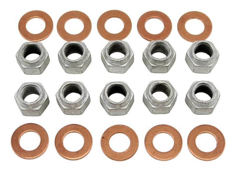10 nuts and 10 copper washers. Nuts are clear cad like original.