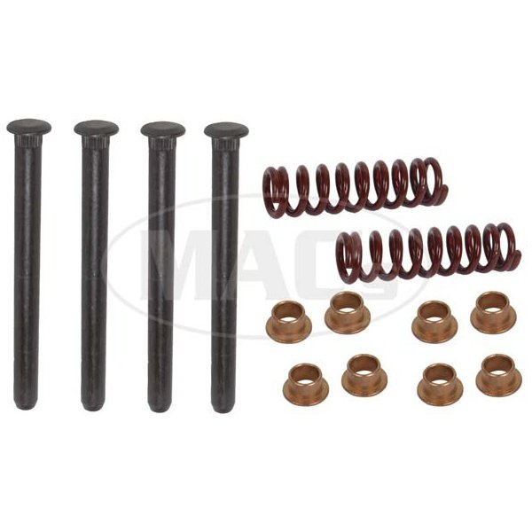 Original hinge pins, springs and bushings for your Ranchero, Torino, Falcon or Fairlane. The kit includes 8 bushings, 4 hinge pins and 2 springs.