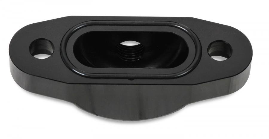 Earl's GM LS Oil Cooler Block-Off is a billet cover that has an extra 1/8" NPT port that can be used for an oil pressure gauge or a turbo oil supply port. The 1/8" port is located on the top for extra header clearance. Includes billet cover, O-ring seal (no gasket required), and mounting hardware. Black anodized finish.