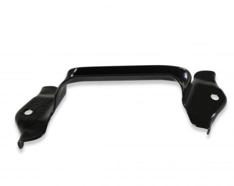 Correct stamped steel battery tray hold down bracket for 1960/1966 models of Ranchero, Falcon and Comet with 40 and 45 amp batteries. Made to match the original Ford part exactly and finished in original semi-gloss black paint.