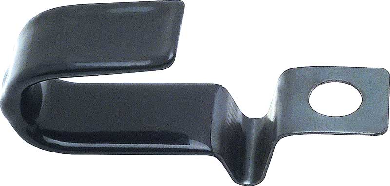 Manufactured in stamped steel with a plastic coating that protects the cable. Installs between the oil pan bolt and the oil pan to guide the battery cable to the starter. Helps to keep the battery cable in place.