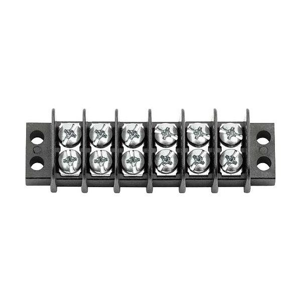 This is a 6 gang double row type terminal strip with a high barrier design for increased safety with maximum circuit isolation. It enables connecting 2 or more terminal strip connections without jumper wires.