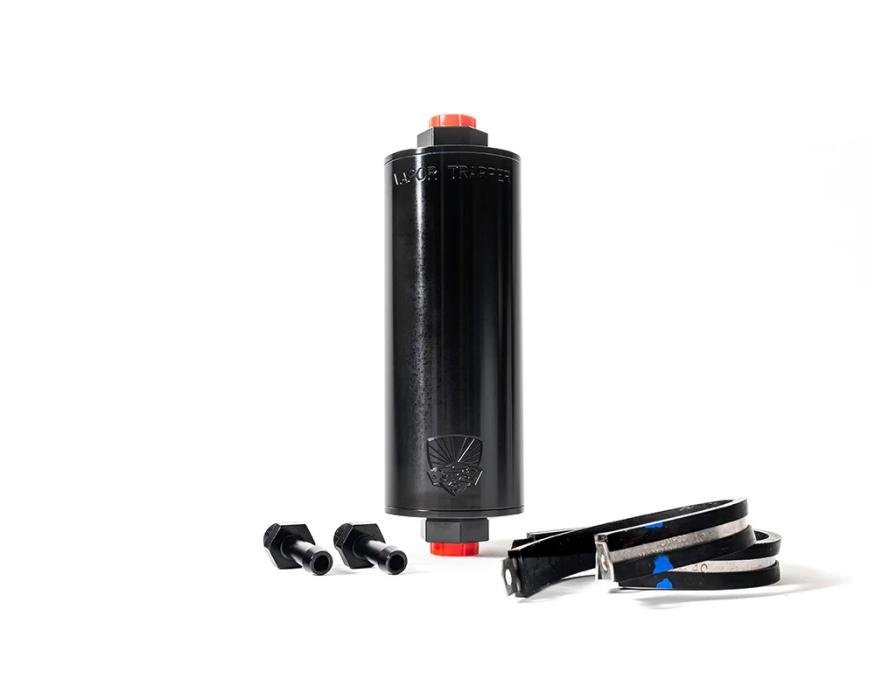 The Vapor Trapper™ can be easily mounted using two 2-1/2” clamps put in line with your fuel tank vent line. Use #6 AN O-ring Boss fitting (barb fittings with a rubber fuel hose or a threaded AN fitting for a more custom installation). Make sure to install the Vapor Trapper™, or at least the inlet line, far above the fuel tank to avoid liquid fuel getting into the filter. Fuel getting into the Charcoal media drastically reduces the performance of this product. If this occurs, please contact us so we can recharge your Vapor Trapper™.