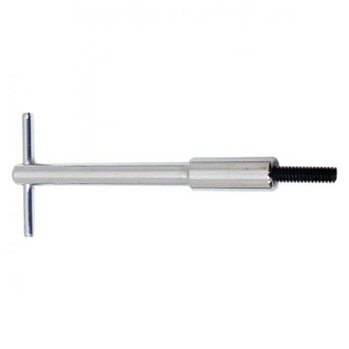 5" tall chrome T-Bar wing nut for Chevy, Ford, or Mopar engines. Thread size: 1/4"-20 x 1-3/8" studs.