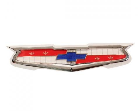 This hood and trunk emblem is injection-molded of high quality clear acrylic, and painstakingly decorated to match the original colors. Plastic Insert Only. Also fits 55 trunk, 56-57 6-Cylinder Trunk (150 & 210 Series) & 57 Bel…