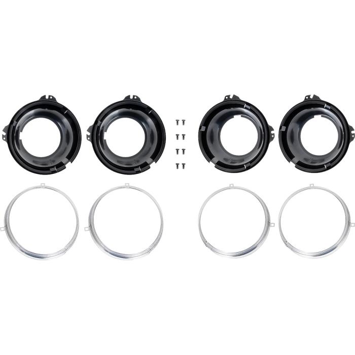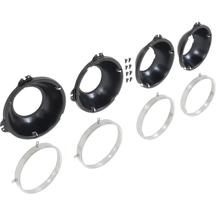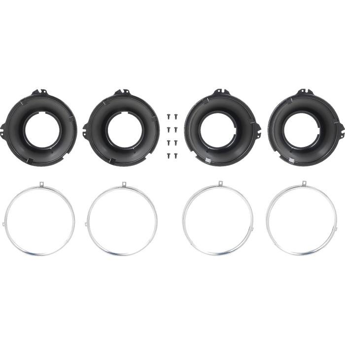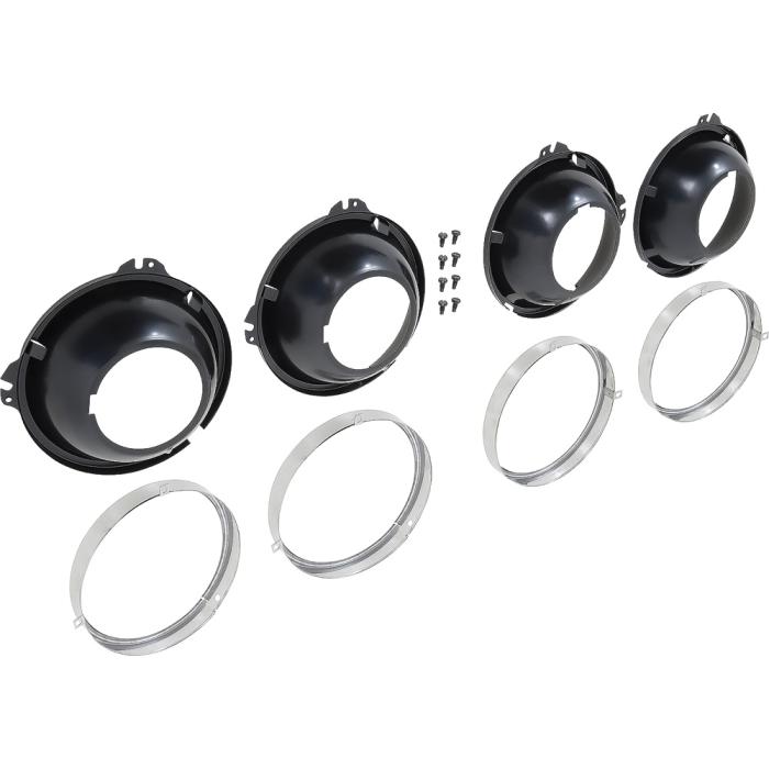 OER®reproduction of the original 2-tab headlamp mounting buckets and headlamp mounting rings designed for use on various GM vehicles including 1958-61 Chevrolet trucks and 1958-72 GMC pickup truck models. Each headlamp bucket is manufactured in stamped steel in the correct factory configuration for an exact replacement. Also includes a set of headlamp trim rings that install over the headlamp bulb. Includes 4 headlamp buckets, 4 headlamp trim rings and attaching hardware for installation. 8 piece set.