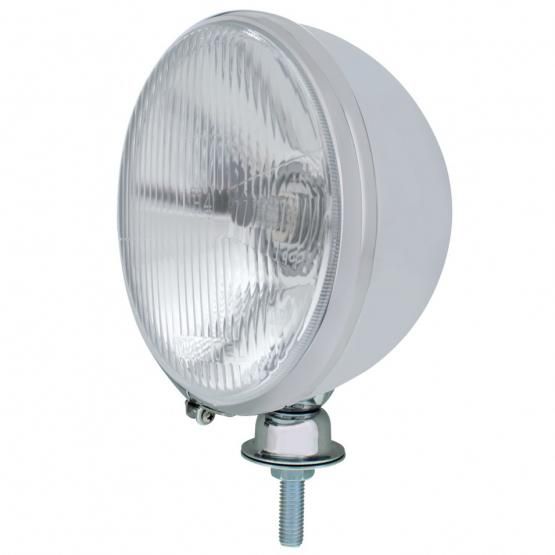 United Pacific 7" Chrome Kingbee Style 12V Headlight w/Flat Halogen H4 Bulb (Pair) A5023
