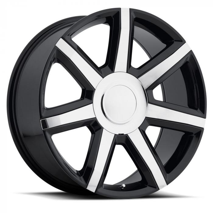 One of the newer Escalade wheel options, the Escalade Luxury Replica Wheel keeps your SUV current . The clean 7 spokes each have a plastic chrome insert that extends from lip to cap creating a two tone appearance.