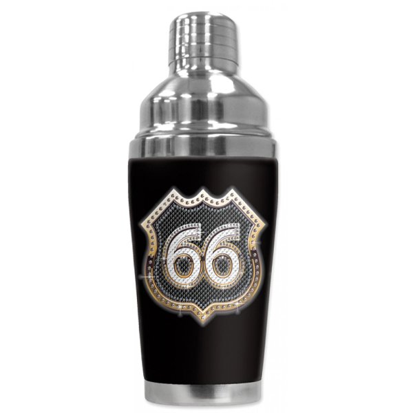 Mugzie Cocktail Shaker, Hot Or Cold, Checkered Flag Route 66 Bling (gold):