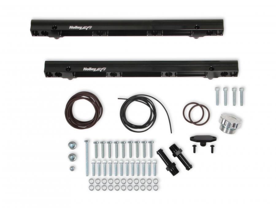 • Includes EFI Fuel Rails w/ -8 AN O-Ring Fittings & Large Passages to Accommodate High Fuel Flow and Dampen Pressure Pulsations in the Fuel System