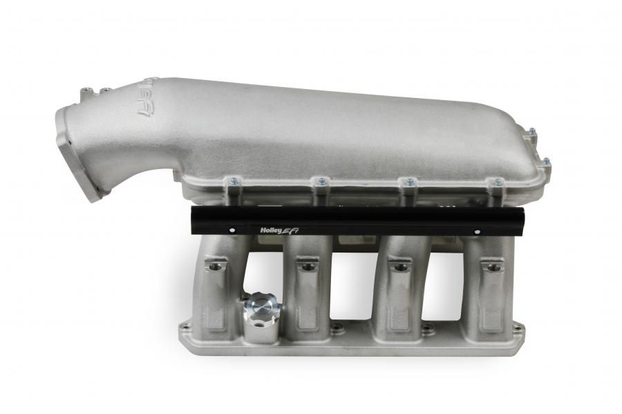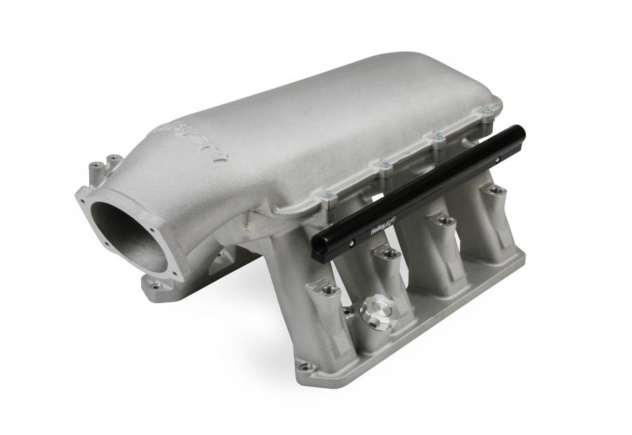 Add even more power to your Gen III Hemi engine with a Holley Hi-Ram intake manifold. This cast intake manifold has large intake ports - fits 2009-up 5.7L, 2005-2010 6.1L & 2011-up 6.4L engines. The Holley Hi-Ram intake manifold is for high-performance applications where induction system height is not limited. Using this Hi-Ram intake with high flowing Gen III Hemi cylinder heads has outstanding potential for naturally aspirated & forced induction applications. Aggressive, bold, race-bred styling will make bad intentions clear for drag race, muscle car, marine, off-road, sandrails, pulling trucks, track, street-rod applications and more! The base is designed to be modular in configuration to accept a wide range of EFI tops and to be attractive to builders and fabricators as the foundation for custom induction systems. Runner length and the tapered cross-section designed to perform well for a wide range of engine configurations. The EFI fuel rails are machined for -8AN O-ring fittings with passages large enough to accommodate high fuel flow and dampen pressure pulsations in the fuel system and come standard with EFI Hi-Ram kits. Intended for use on naturally aspirated, forced induction, or nitrous engines in the 5.7 to 7.2+ liter range, max power at 7500-8500 RPM.