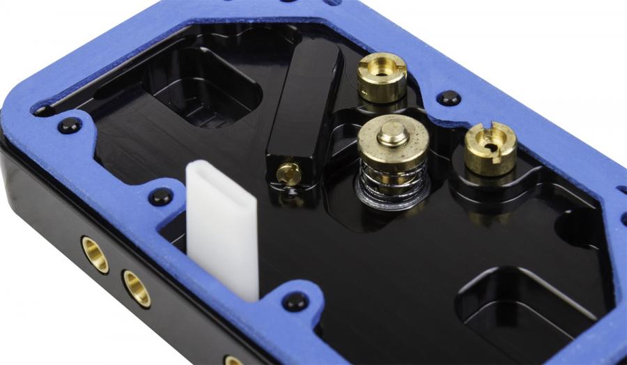 - Hard Core Gray with Black™ billet aluminum metering block and base plate