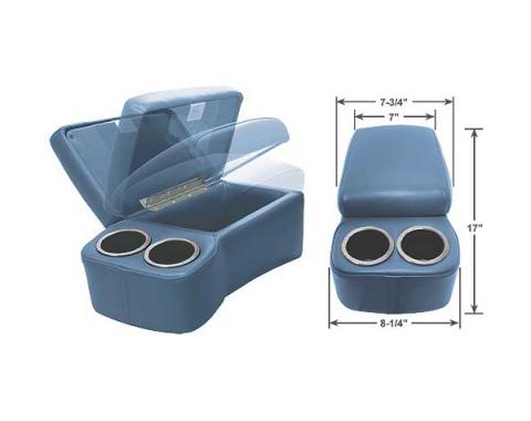 Custom Vinyl Covered Console Also Serves As A Comfortable Armrest Heavy Duty Construction - Not Cheap Plastic Contoured To Fit Seat Cushion Long Style For Column Mounted Shifter Gives Maximum Storage Twin Chrome-Edged 3-1/2" Cup Holders…