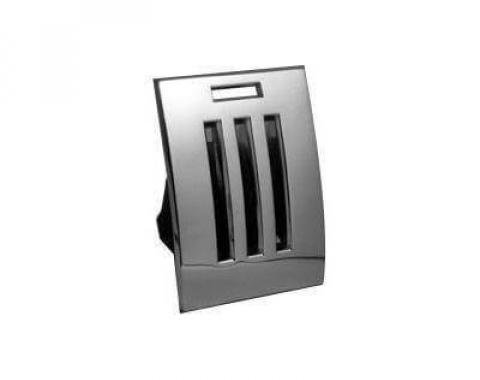 Our reproduction heater dash plate is a fine pressure die-cast zinc unit made to Scott Drake?s high standards. Excellent chrome plating on face. Includes mounting studs and nuts.