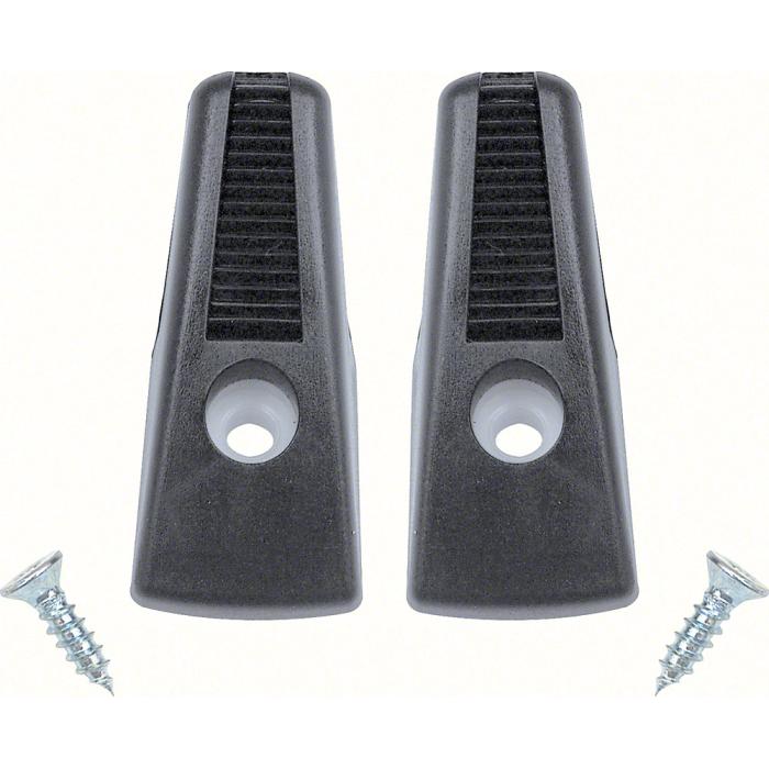 Reproduction of the original style coat hanger hooks designed for use on a variety of 1967-91 General Motors vehicles. Manufactured in quality injection-molded ABS to original factory specifications. These coat hooks feature the correct louvered style design offering an authentic and original appearance. They install in the rear inner section of the interior. Sold in pairs. Includes mounting screws. Replaces GM part numbers 7700926, 9867352 & 14033354.