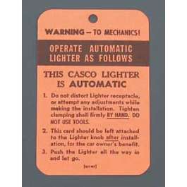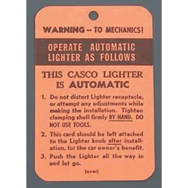 Chevy Casco Cigarette Lighter Instruction Tag, 1949-1954: