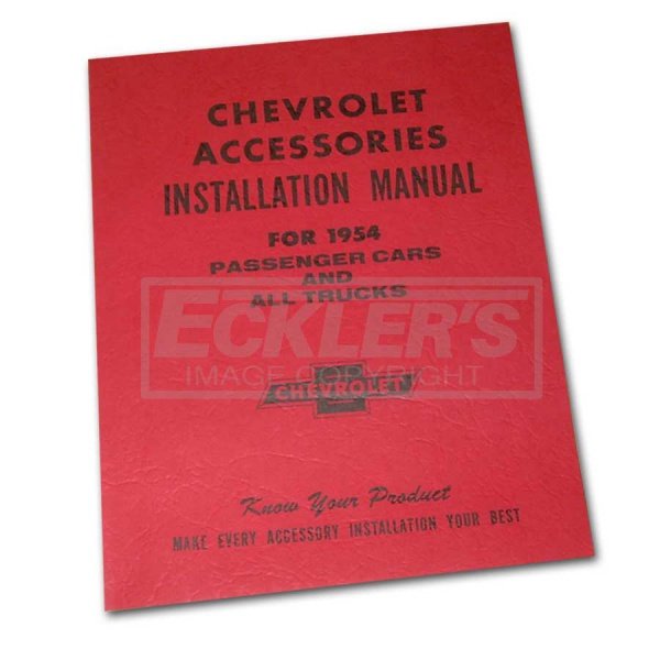 Crisp Reprint Of Original Dealership Manual Over 100 Fact Filled Pages Easy To Follow Installation Instructions For Radio, Antenna, Rear Speaker And More Fully Illustrated Chevy accessory manuals offer a glimpse into the past. Now you can add this companion book to your library. The Chevrolet Accessories Installation Manual is packed full of how to tips on installing all those nifty parts and accessories. The guide covers such topics as radio, antenna, rear seat speaker installation, turn signals and much, much more. With over 100 pages of informative how to?