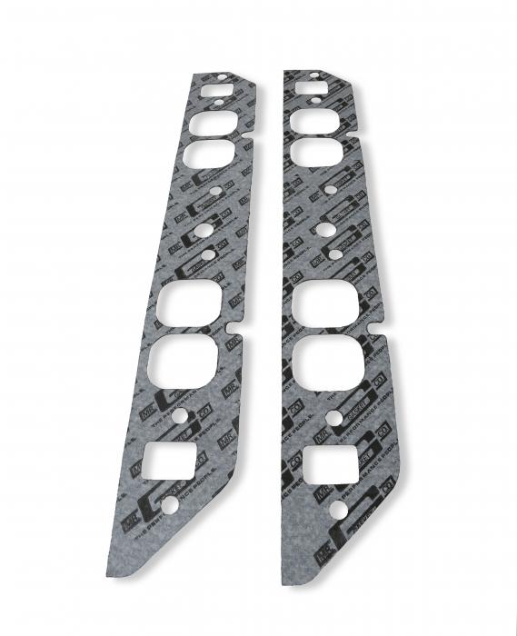 Mr. Gasket Performance Intake Gaskets are manufactured from cellulose/nitrile composition gasket material. This is a low density material that conforms well to irregular surfaces and has very good crush resistance at high flange pressures. They provide excellent sealing and durability as the material is designed for sealing gasoline, oils, water and coolant in applications up to 350 degrees Fahrenheit. While die-cut for an excellent fit, they can be trimmed if necessary for modified port applications. Comes complete with cork front & rear manifold end seals. For original equipment replacement, high performance street, drag race and oval track.