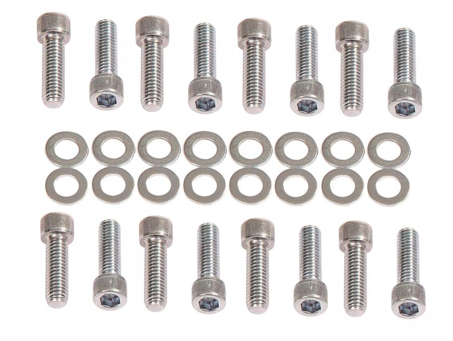 These grade 5 hex head bolts are brite zinc plated for protection and appearance. Hardened flat washers provide uniform torque & prevent galling on aluminum manifolds. Includes sixteen (16) 3/8 inch-16 x 1-1/4 inch bolts & washers
