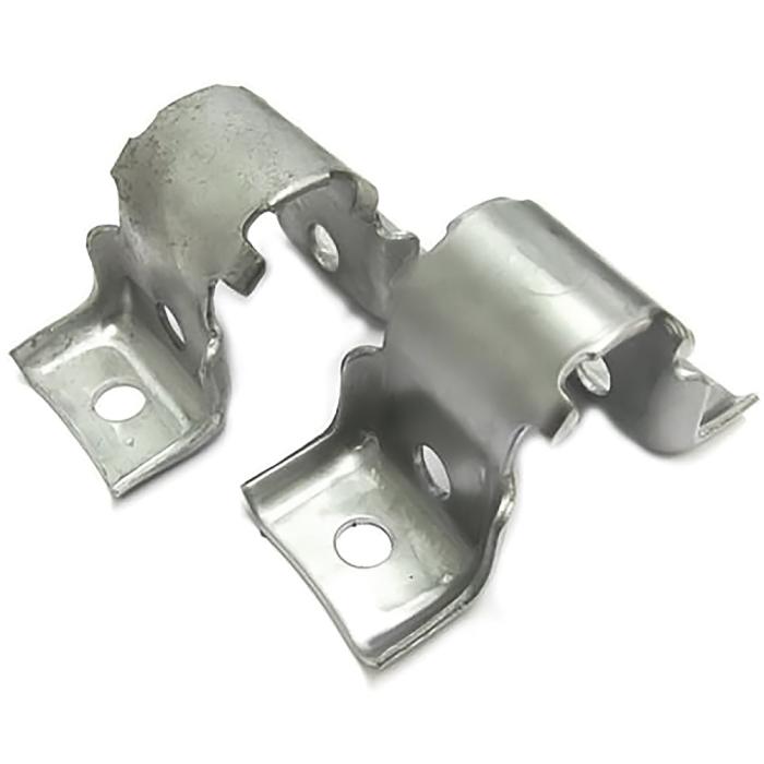 OER® reproduction of the original style "U" shaped sway bar bushing clamp designed for use with various GM models. This bracket is manufactured from stamped steel and used to hold the inner sway bar bushings and the sway bar to the subframe. Sold individually. 2 required per vehicle.