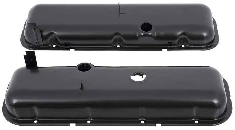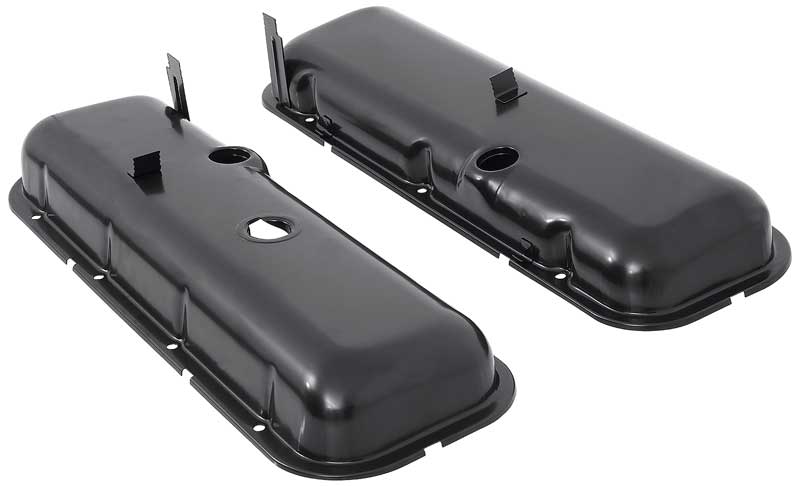 Reproduction of the original type baffled stamped steel valve covers for use with Chevrolet 396ci, 427ci, and 454ci big block engines. Each valve cover set features the OE style plug wire retainer tabs, correct diameter grommet holes and oil filler cap holes. Valve covers come EDP coated for rust and corrosion prevention. Includes RH and LH valve covers. Sold in pairs.
