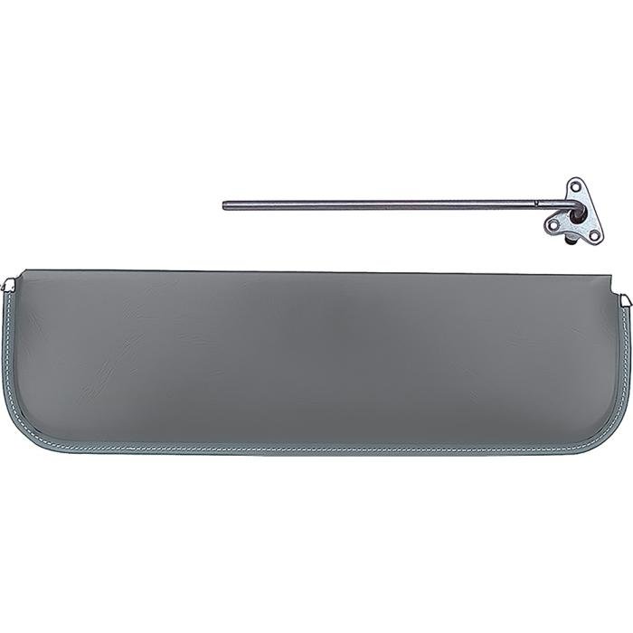 The original sun visors and brackets consisted of colored cardboard with a polished bracket and edging. Our replacement visors are exact reproductions of the originals and are shipped in protective boxes so they are not scratched or damaged in transit to you. Simply attach the bracket to the visor, and then to the headliner area and your ready. Fits right hand (passenger) side.