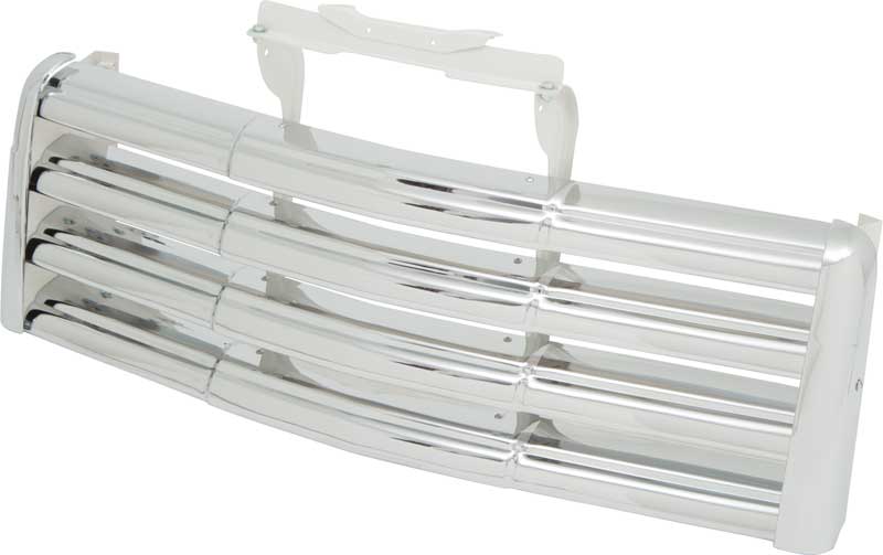 Stamped from high-quality steel and finished in brilliant polished chrome, this grille restores the front end with a show-quality shine that captures the factory look. Whether you're replacing a rusted, bent, or missing original, this authentic reproduction offers OEM-level accuracy in both appearance and installation. Note: Grille brackets come painted. Pre-fit recommended prior to final assembly and paint.