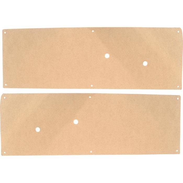 Reproduction inner door panels for 1947-55 Chevrolet and GMC pickup truck models. Each door panel is manufactured from durable cardboard, replicating the OE design and appearance. Each panel measures approximately 32" x 10-1/2". Replace old, worn-out, or missing door panels on your Classic Chevy or GMC truck with these quality reproductions. Fitment covers 1955 1st design (early production) models. Sold in pairs.