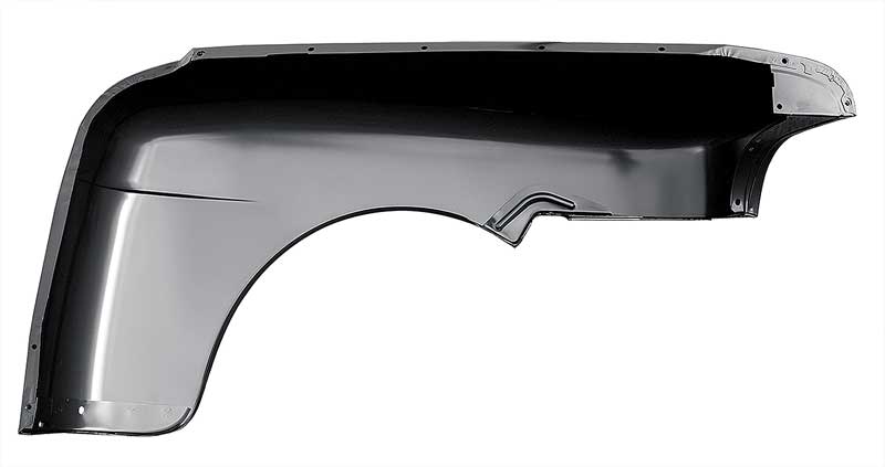 Reproduction front fender for 1948-50 Ford F1 and F2 pickup trucks. Each fender is manufactured in quality stamped steel replicating the original in every detail. The emblem holes are not punched for a clean look but can be easily drilled for a stock appearance. Supplied in a black EDP coating for rust and corrosion prevention. Fits LH driver side.