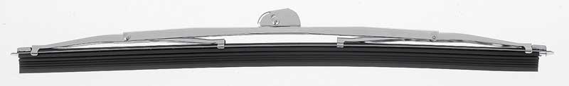 Reproduction windshield wiper blade for 1954-55 1st Series Chevrolet and GMC trucks, 1949-54 Chevrolet Full-Size Passenger Car models, and a wide range of other makes and models equipped with wrist-action style wiper arm connectors. Each polished stainless steel, triple-action blade is designed for use with snap-in or wrist-action wiper arms (sold separately). Features a polished stainless steel finish for beauty, durability, and superior corrosion resistance. High-grade rubber wiping edge delivers a streak-free wipe for clear visibility and safer driving. Measures 10-5/8" in length. Sold individually.