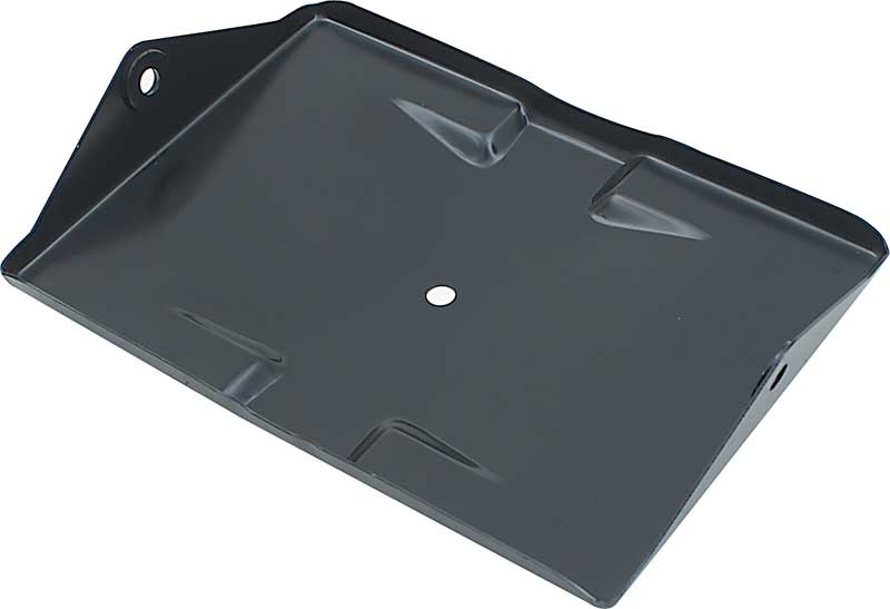 Reproduction of the original battery tray bottom designed for use with 1955-57 Chevrolet and GMC pickup truck models. Each battery tray is manufactured in quality stamped steel to the original GM configuration. Comes with black EDP coating for rust and corrosion prevention.
