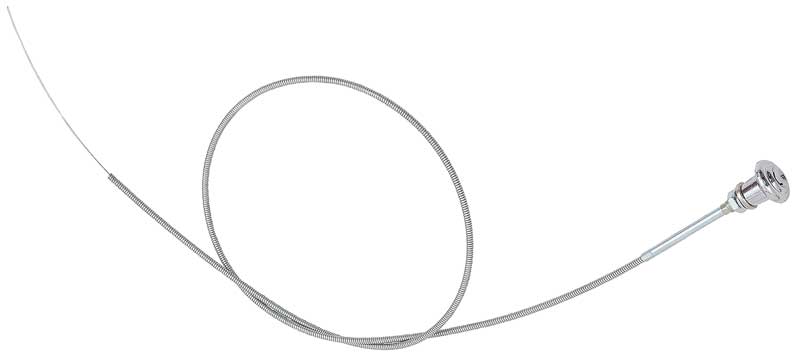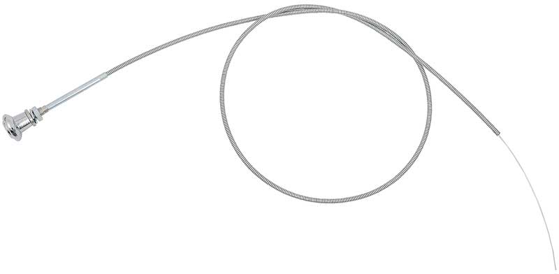 Reproduction of the original throttle cable designed for use with 1955-59 Chevrolet and GMC truck models as listed. Each cable is manufactured to factory specifications replicating the original in length and appearance offering dependability and authenticity. Mounts to the dash and operates the throttle. Cable comes with mounting hardware and chrome knob.