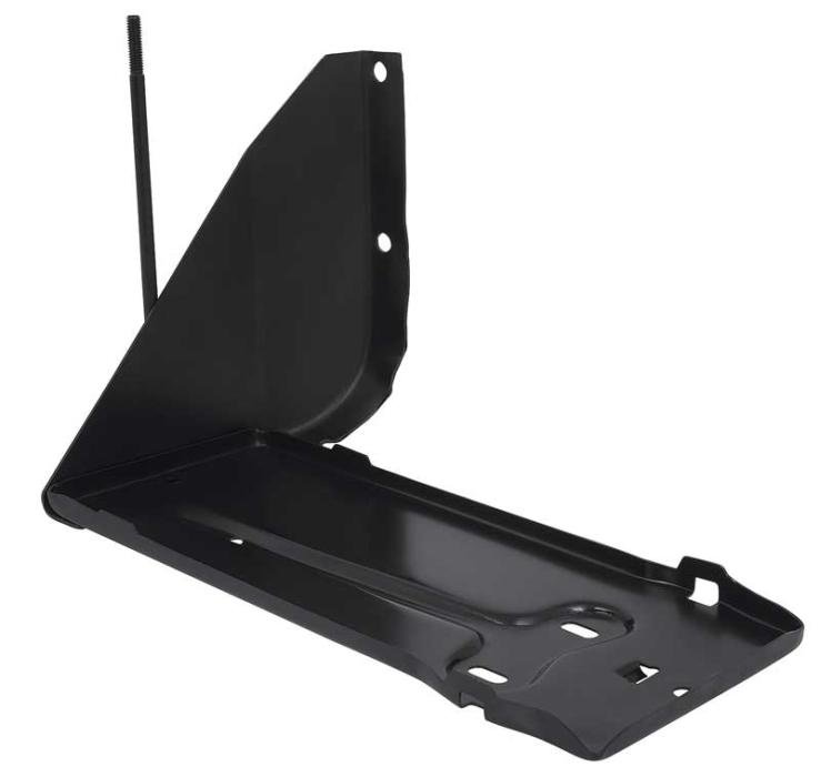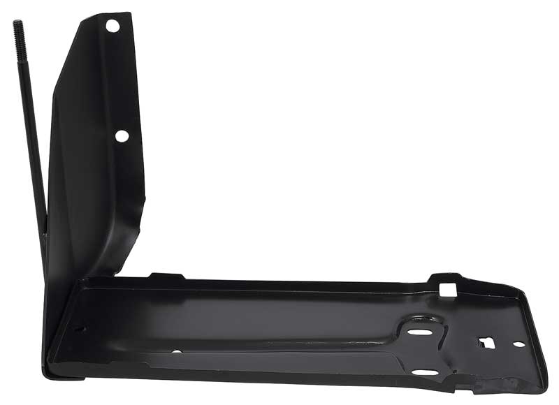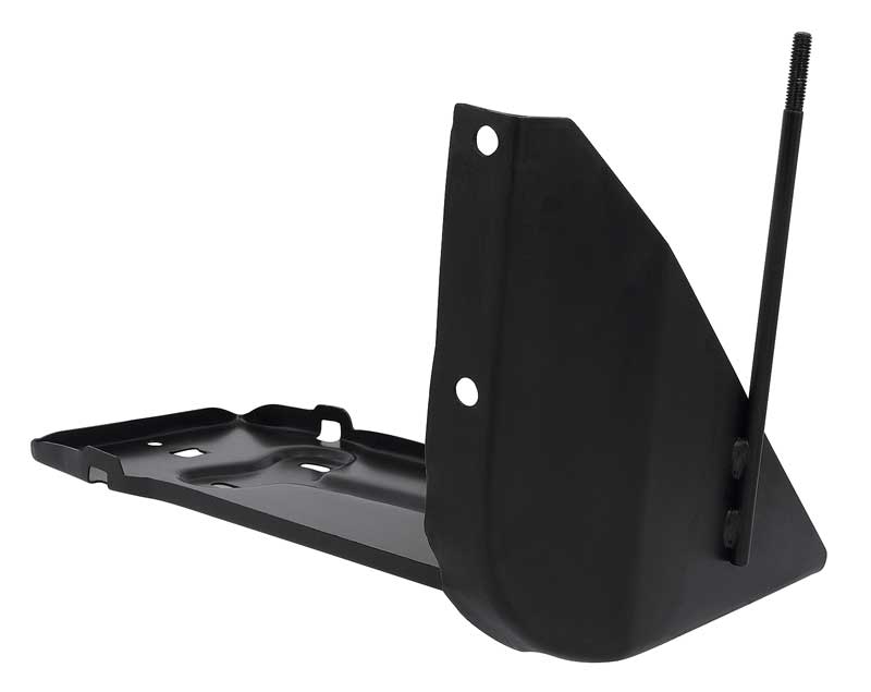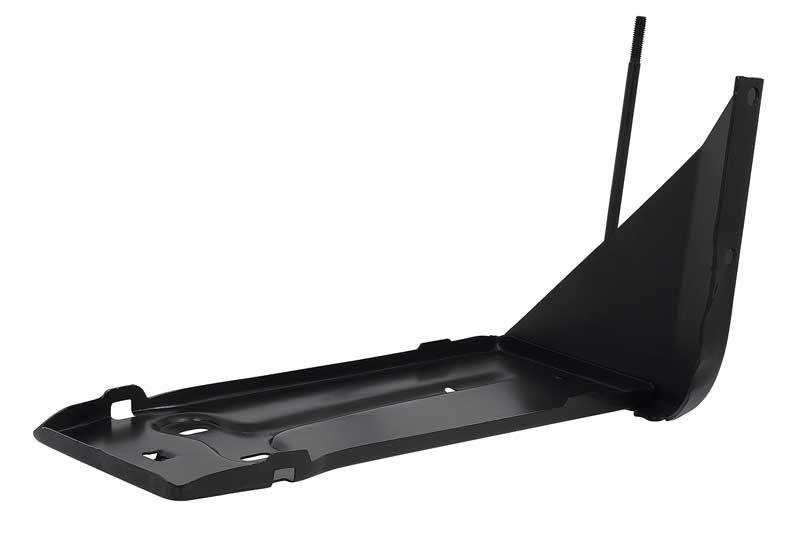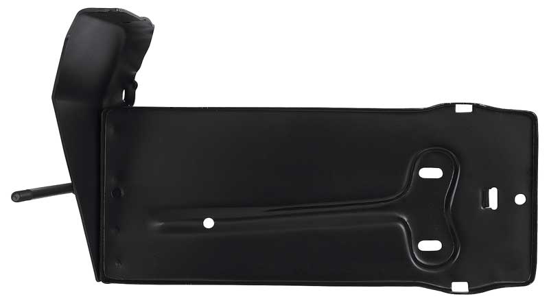 Reproduction of the original battery tray designed for use with most 1956-60 Ford F-Series truck models. Applications include F100, F250, F350 pickups, and up to F800 trucks. Each battery tray is manufactured in high-grade stamped steel featuring correct pre-drilled mounting holes matching the factory tray. It is a direct bolt-in replacement of the original and includes battery hold down bolts. Comes with a black EDP coating for rust and corrosion prevention. Replaces OE #'s B6A-10732-A, or 7RC-10732-C.