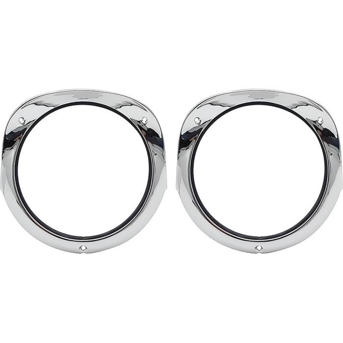 Reproduction of the original headlight bezels designed for use with 1956 Chevrolet Bel Air, 150, 210, and Nomad models. Each bezel is manufactured to factory specifications featuring correct chrome plating. Will install and mount just like the originals. Includes mounting gaskets. Hardware available separately. Comes with RH and LH bezels. Sold in pairs.