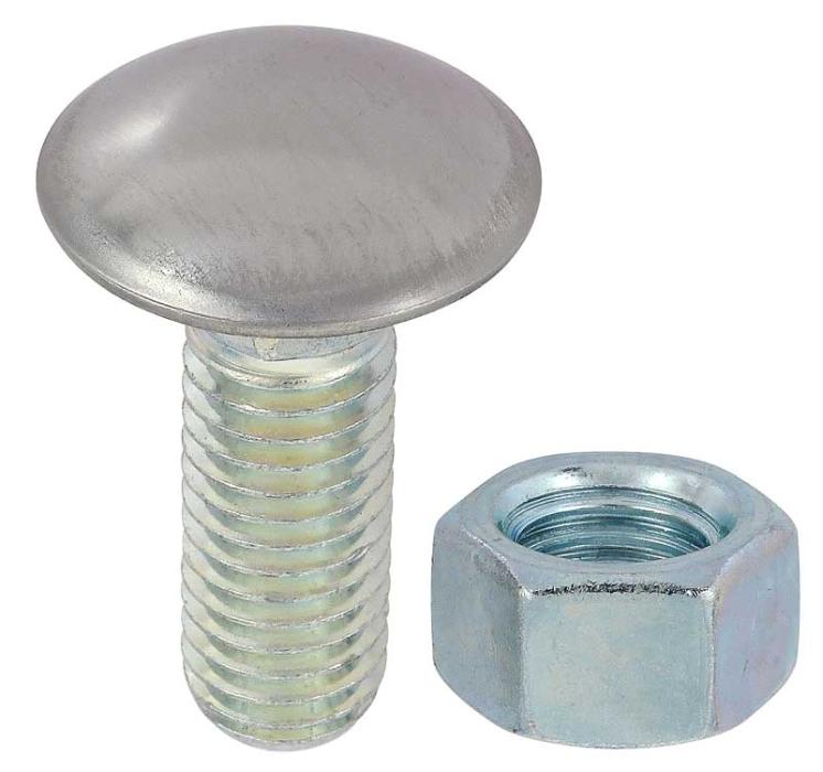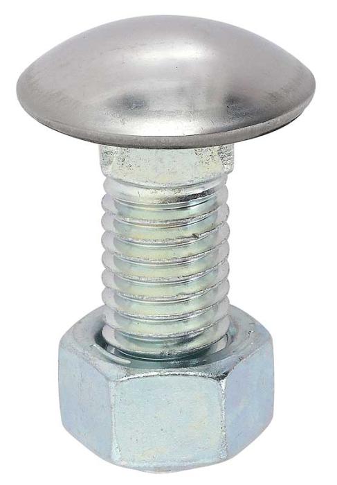 Replacement style stainless steel capped bumper bolt and nut designed for use on many GM vehicles. Each bolt measures 1/2"-13 x 1-1/2"; 1-1/8" head diameter and comes complete with attaching nut. Can be used for a wide variety of applications. Sold individually. Use as required.