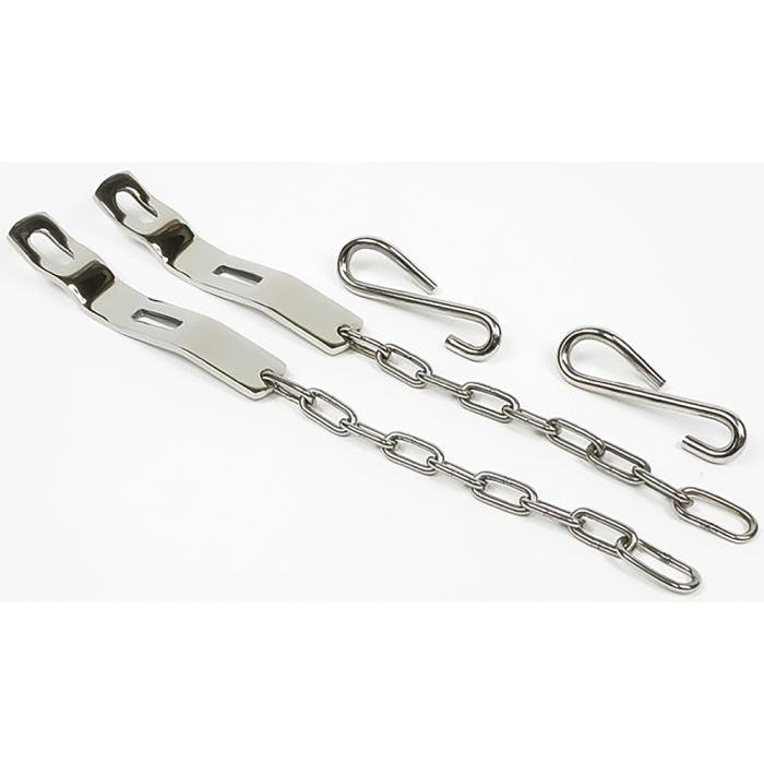 Tailgate chain assemblies are used on Fleetside trucks as a method of supporting the gate when open, and securing the gate when it is closed. Each set is manufactured in steel, chrome-plated for corrosion resistance and a bright polished finish, and supplied with chains, hooks, and brackets. Sold as a set for the LH and RH sides.
