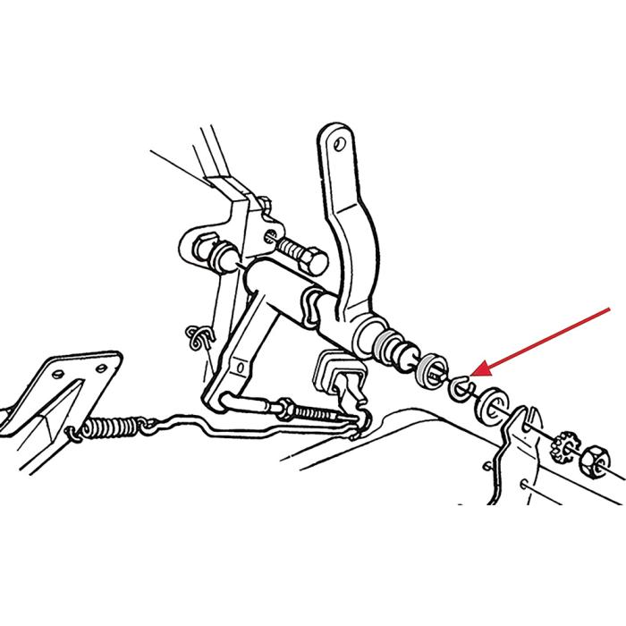 Reproduction clutch bell crank (Z-bar) pivot stud seat retaining clip for various 1958-88 Chevrolet, Buick, Oldsmobile, and Pontiac models equipped with a manual transmission. This clip installs on the frame side pivot stud and retains the nylon seat in position, allowing the Z-bar to pivot smoothly while maintaining proper clutch linkage alignment. Designed to replicate the original GM clip for a secure, OE-style installation. Replaces GM part number 3750696.