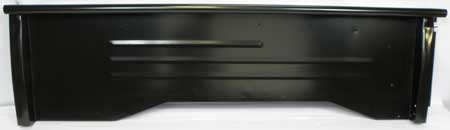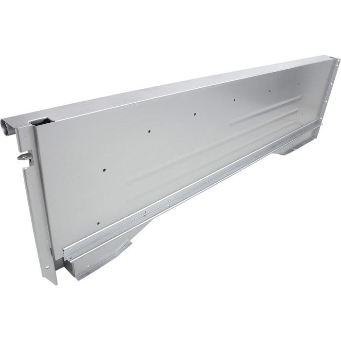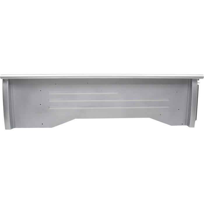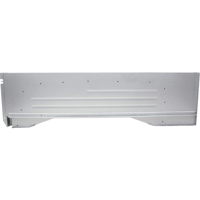 Reproduction bed side panel for 1960-66 Stepside short bed pickup models, featuring 16-gauge, electro-galvanized steel and proper tail lamp mounting holes. Fits Left Hand (Driver) Side. Supplied in silver primer finish.