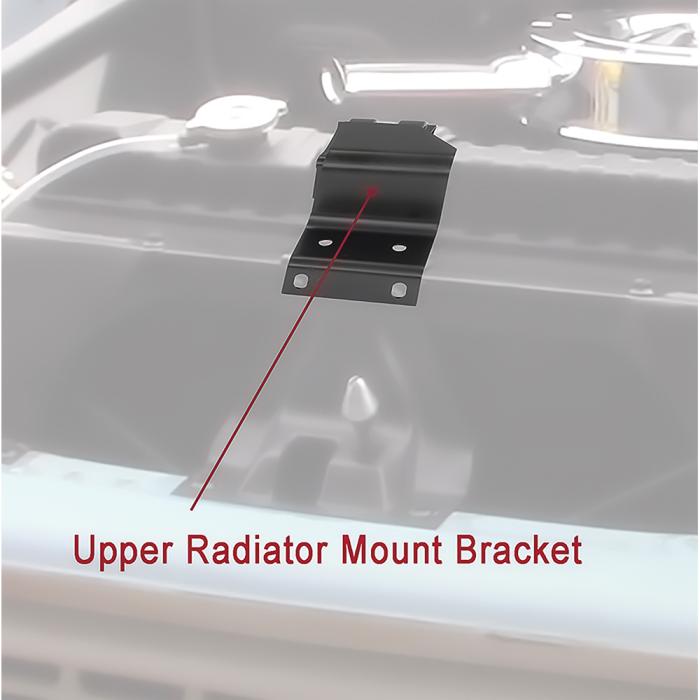 Reproduction upper radiator mounting bracket or upper radiator support for 1963-66 Chevrolet and GMC pickup, panel, and Suburban models. This bracket is manufactured in quality stamped steel matching the original GM factory specifications. Features correct mounting locations for an authentic replacement. Bracket comes finished in black EDP coating for rust and corrosion prevention. Sold individually. One required per vehicle.