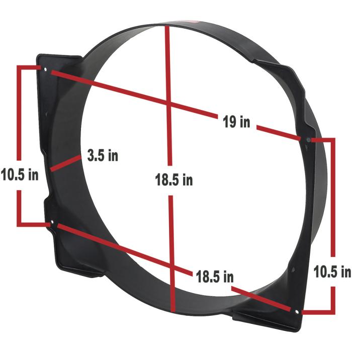 Performance fan shroud for various 1963-66 Ford and Mercury models including Mustang, Ranchero, Falcon and Comet models. This fan shroud will substantially improve cooling over the original. The extra deep design is very efficient in drawing in cool air through the radiator while at low speeds and idling where most overheating usually occurs. The highly heat resistant fiber composite material is easy to trim to accomodate cooling system modifications or AC systems. This helps you to run cooler. For 17" Radiators.